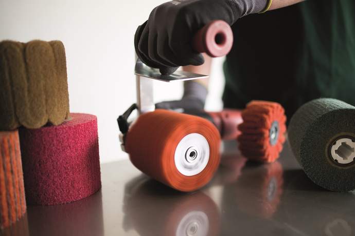 - Die unterschiedlich angeordneten Bohrungen sorgen für den optimaen Abstand zwischen Schleifwalze und Schutzblech