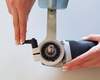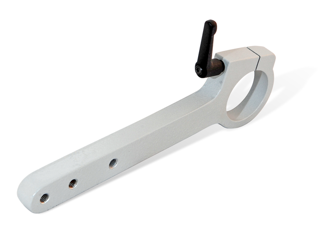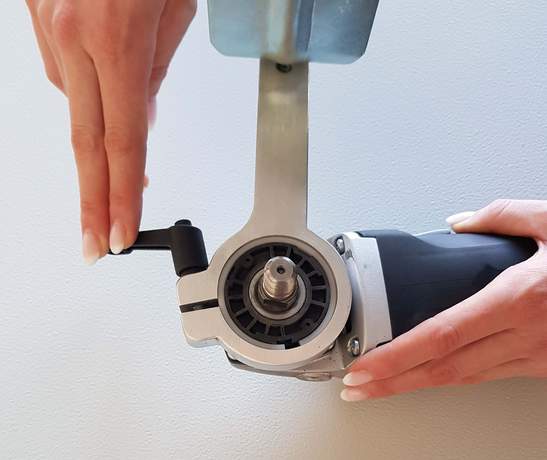 - Der Halter wird mit dem passenden Adapter mittels Klemmbhebel am Eurohals des Winkelschleifers befestigt