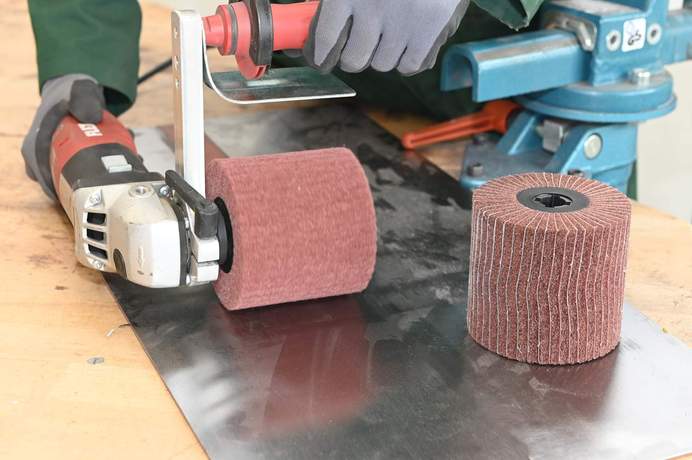 - Zum Satinerien und Feinschleifen bei Metallen, NE-Metallen, Stahl, Aluminium, Legierungen und Guss