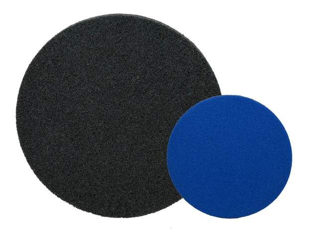 - Mehrlagig verpresstes, dreidimensionales Faservlies, getränkt mit in Kunstharz eingegossenem Schleifkorn. Dadurch entsteht ein breites Produktsortiment, das von extrem harten Entgratungs- bis zu weichen und flexiblen Finisharbeiten reicht.