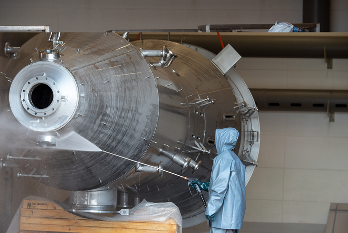 - Zum Sprühen kommt eine aus Kunststoff bestehende Doppelmembranpumpe zum Einsatz