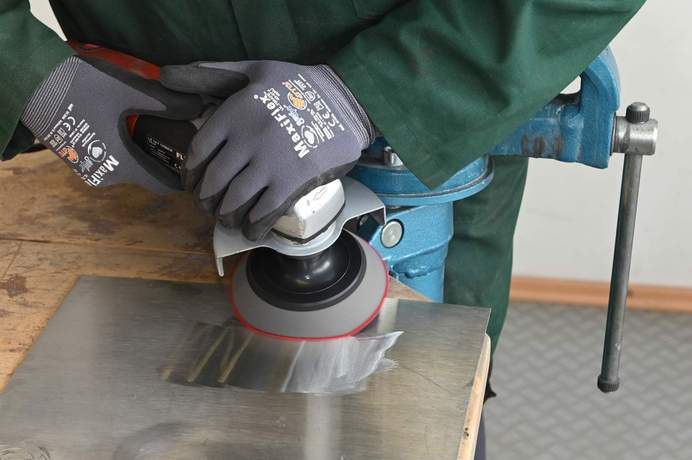 - Stützteller für Klettscheiben zum Abtragen von Schweißnähten, Korrigieren von Fehlstellen und Angleichen der Oberfläche
